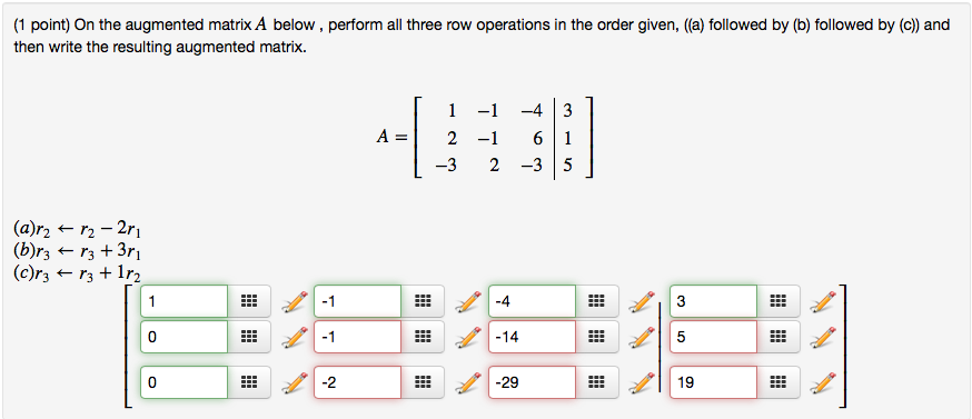 The augmented matrix is an extension of a matrix in which we add a column ( nonhomogeneous part of system ax=b i.e b). But in the middle is a solid line. How to solve an augmented matrix in a calculator. Join in and write your own page! Matrices come in various dimensions and we write the dimensions of a matrix as the number of rows x the number of columns. The first step here is to write down the augmented matrix for this system. Write the augmented matrix for the system of equations the augmented matrix for this system would be row operations can help us organize a way to do this regardless of how many variables or how many equations we are given. However, it is important to understand how to move back and forth between formats. How do i use matrices to solve the system #2x+3y=4# and #5x+8y=11#? The solution is the set of ordered pairs that makes the system true. An augmented matrix for a system of equations is a matrix of numbers in which each row represents the constants from one equation okay, so how do we use augmented matrices and row operations to solve systems? How would one construct elementary matrices corresponding to operation (e2)? Write the system of equations in matrix form.